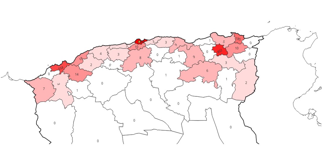La surreprésentation des pourvois issus des juridictions coloniales, déjà analysée lors des publications précédentes, se confirme. L'Algérie est ainsi le second pourvoyeur de la Chambre criminelle de la Cour de cassation, précédée uniquement par le département de la Seine et suivie de la Seine inférieure, dont la surreprésentation reste à expliquer. La carte ci-dessous présente la répartition des pourvois par wilayas algériennes (Oran, Alger et Constantine se détachent).